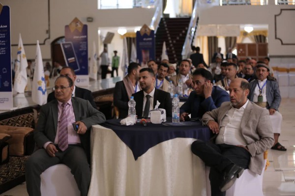 Mr. Imad Al-Aghbari, Mahfathati Manager, spoke with an explanatory introduction about the “Mahfathati Service” and its importance and advantages to serve the community to reduce the use of cash and use it electronically and according to the vision of the Central Bank by working to pay purchases and obligations through electronic payment services, and also talked about the advantages it provides to merchants by paying salaries and contracts to activate the service for them in addition to serving individuals.