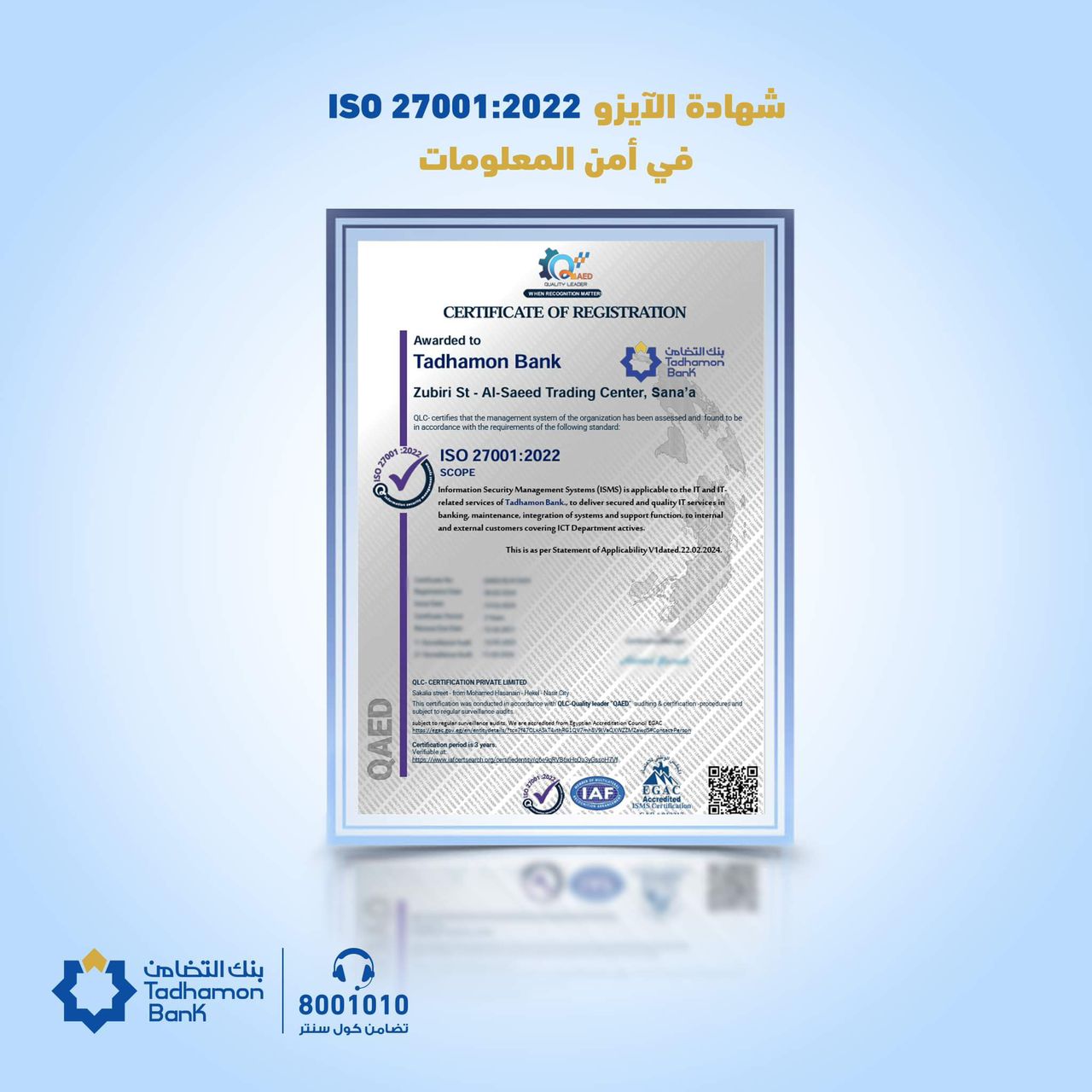 Obtaining the ISO certification underscores the bank’s leadership commitment to implementing international standards for information security and ensuring the protection of customer information and data. It also highlights the bank’s dedication to maintaining the effectiveness of its information security systems, which enhances the trust and appreciation of international institutions in the bank’s information security management systems and standards.